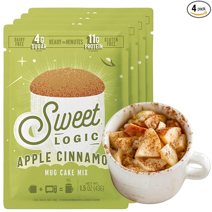Sweet Logic Keto Dessert Mug Cake Mixes - Apple Cinnamon Muffin - Low Sugar Gluten-Free - Low Carb - Diabetic-Friendly Sweets - Natural Ingredients - High Protein - Delicious Keto Treats (4 Pack)