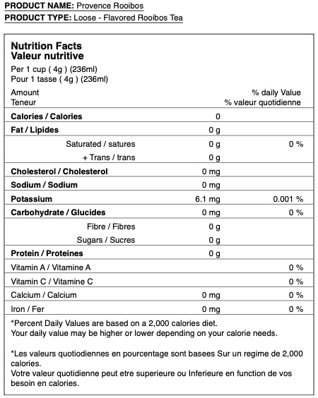 - Flavor : Provence Rooibos - flavored rooibos tea
