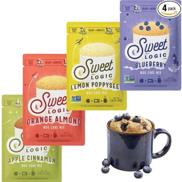 Sweet Logic Keto Dessert Mug Cake Mixes - Breakfast Variety Pack - Blueberry, Apple Cinnamon, Lemon Poppyseed, & Orange Almond - Low Sugar - Low Carb - Gluten-Free - High Protein - All Natural (4 Pack)