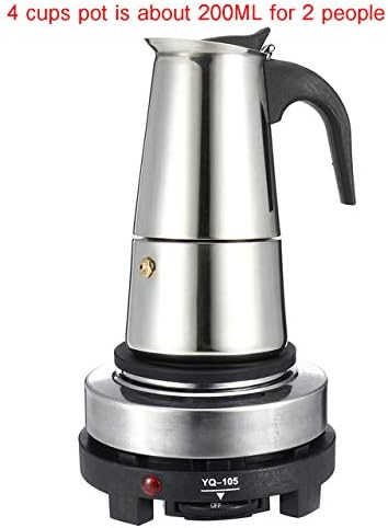 WILL 200450ml Portable Espresso Coffee Maker Moka Pot Stainless Steel with Electric stove Filter Percolator Coffee Brewer Kettle Pot (200ml)