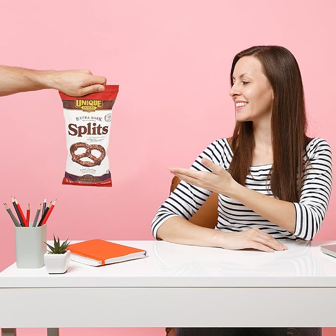 - Multiple Pack Options: Unique Snacks Extra Dark Splits Pretzels come in 3, 6, 9, 12, and 24-pack options. Widely recognized for our one-of-a-kind quality, we have been continuing the family tradition and fascinating pretzel lovers for over a century