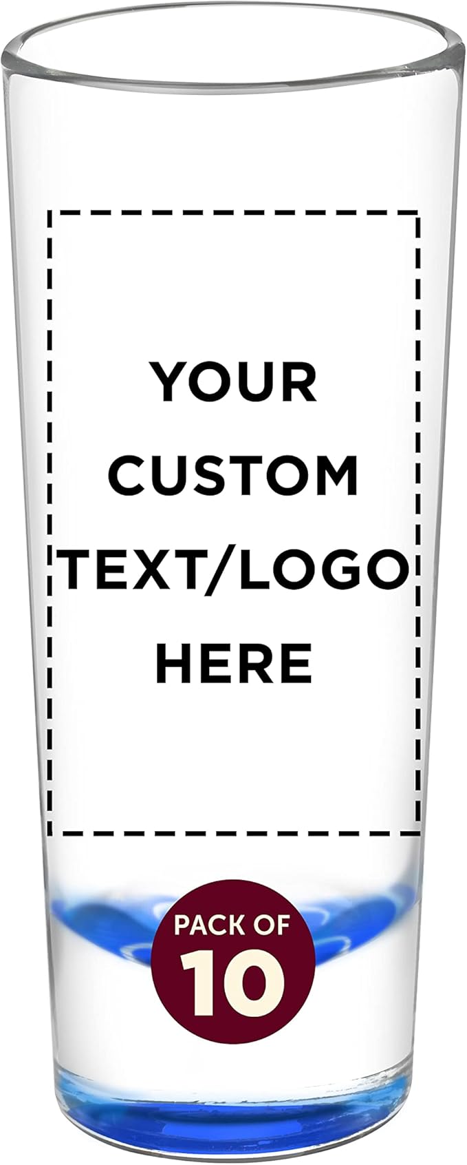 Custom Cordial Shooter Shot Glasses 2 oz. Set of 10, Personalized Bulk Pack - Great for Birthdays, Parties, Indoor & Outdoor Events - Blue