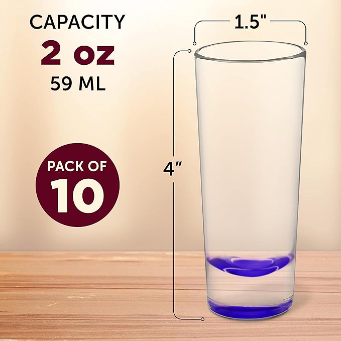 - CLASSIC DESIGN with a TWIST - These traditional shot glasses have a thick protruding base with a sheer rim to add a small twist to this classic design. They are also a stylish addition to your bachelor party pool party, or other gathering.