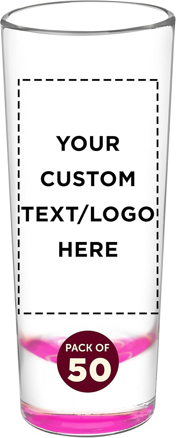 Custom Cordial Shooter Shot Glasses 2 oz. Set of 50, Personalized Bulk Pack - Great for Birthdays, Parties, Indoor & Outdoor Events - Pink
