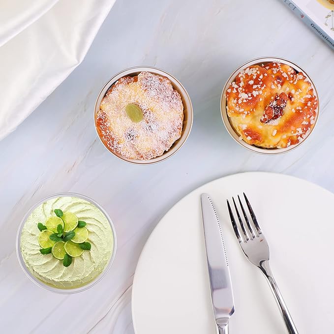 - 【Pretty and Functional】-Could both be disposable and reusable cups,good as single serve &little dessert dish pans cups, such as holding Creme Brulee, tiny cakes, mini cheesecakes, pudding, custard, tasting pies, bark or brownies etc.