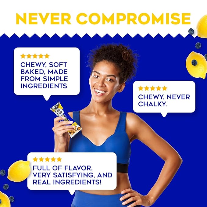 - BLUEBERRY LEMON: Packed with nutritious ingredients like oats, dried blueberries, lemon oil, sunflower oil, and maple syrup to create a bright and delicious summery lemon blueberry granola bar.