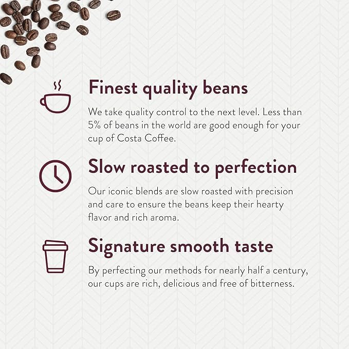 - THE CONVENIENT BREW: Pop in a Costa Coffee single serve pod. Get a delicious, caffeinated jolt. Take on the day. (Repeat as necessary.) Compatible with Keurig K-Cup Brewers.