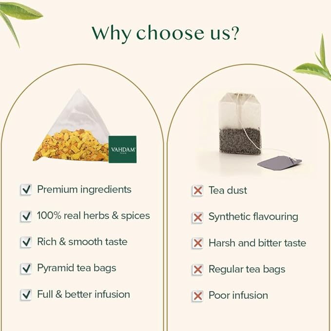 VAHDAM, Turmeric Ginger Herbal Tea Bags (15 Pyramid Tea Bags) Caffeine Free, Non GMO, Gluten Free | 100% Pure Herbal Blend - Savory & Spicy | Individually Wrapped Pyramid Tea Bags | Direct from Source