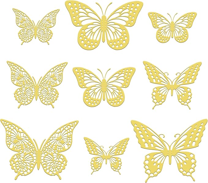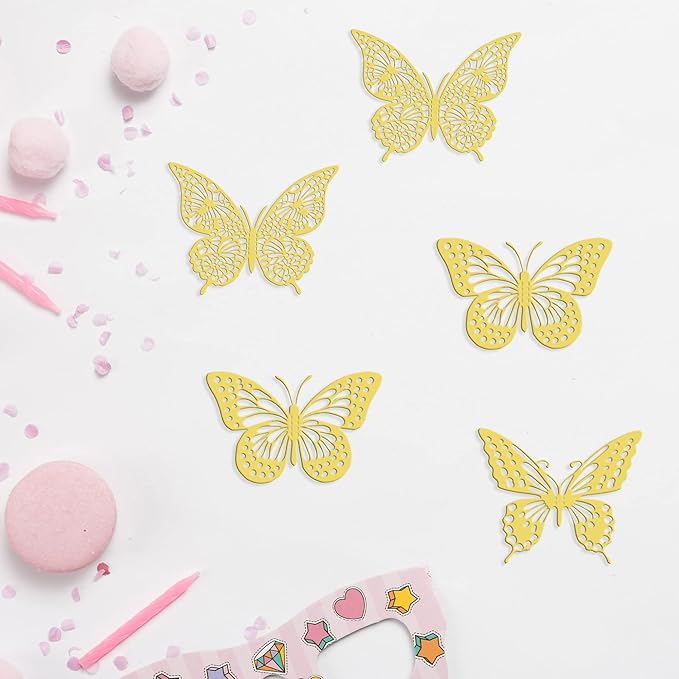 Gyufise 36 Pack Gold Glitter 3D Butterfly Cupcake Toppers Hollow Cake Decorations for Birthday Wedding Fairy Party Wall Sticker Decal