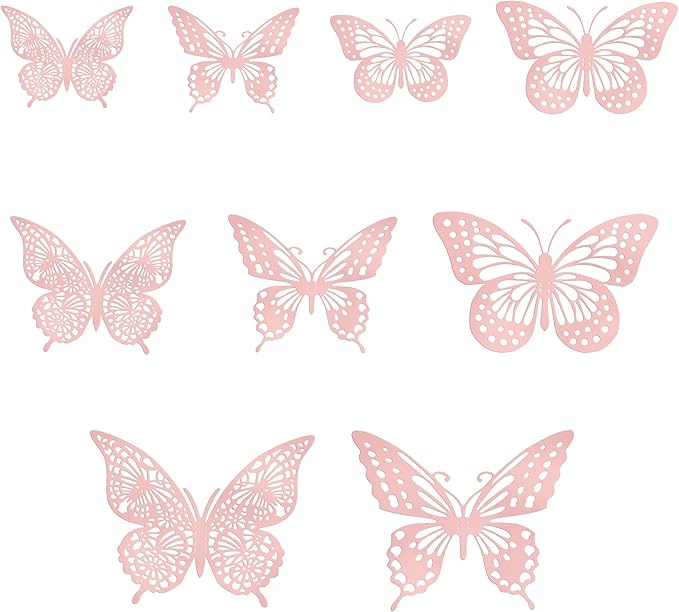 Gyufise 36 Pack Rose Gold Glitter 3D Cupcake Toppers - Hollow Butterfly Cake Decorations for Birthday Wedding Fairy Party - Wall Sticker Decal for Background Wall Decoration