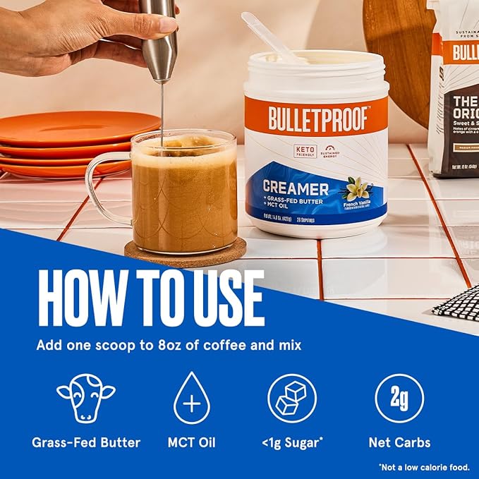 - Contains one 14.8-ounce container of Bulletproof French Vanilla Creamer, a healthy powdered coffee creamer