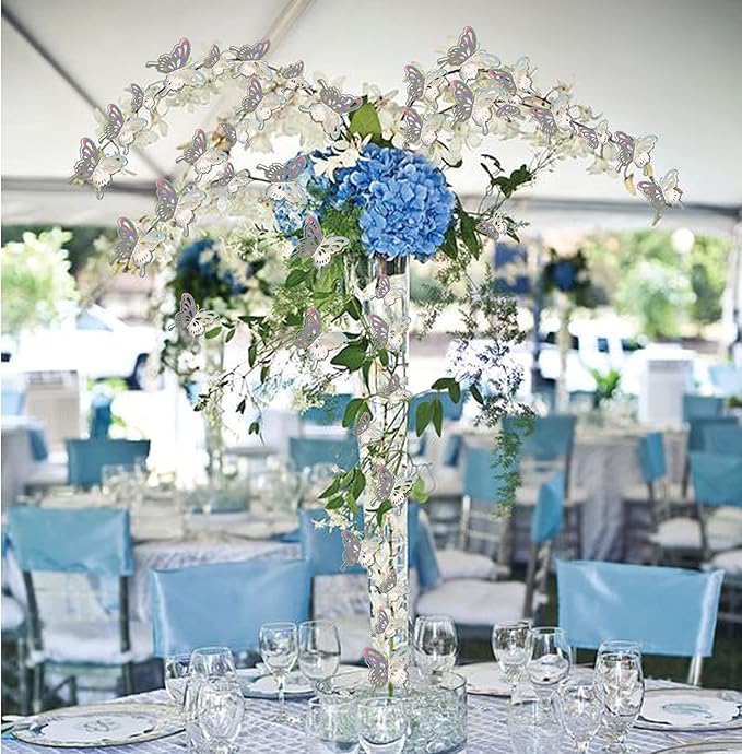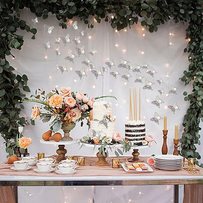40 PCS Lively 3D Butterfly Cupcake Toppers Mixed Size Hollow Art Butterfly Cupcake Topper Baby Shower Wedding Anniversary Birthday Party Cake Wall Decorations Supplies Silver