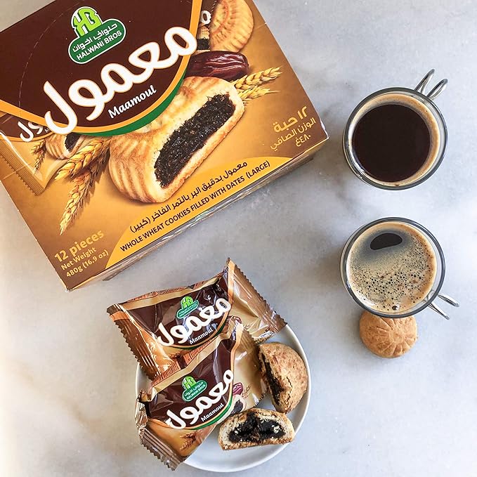 HB Halwani Bros Whole Wheat Maamoul Cookies, Date Filled Round Shortbread Cookies, 100% All Natural, No Additives, No Preservatives, 12 Individually Wrapped Cookies (Pack of 4)