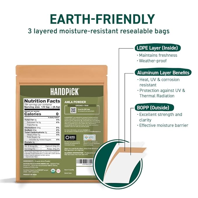 HANDPICK Organic Amla Powder (14oz) Amalaki, USDA Organic, Non-GMO | 100% Raw and Natural - Lab Tested for Purity | Indian Gooseberry Powder | Resealable Zip Lock Pouch