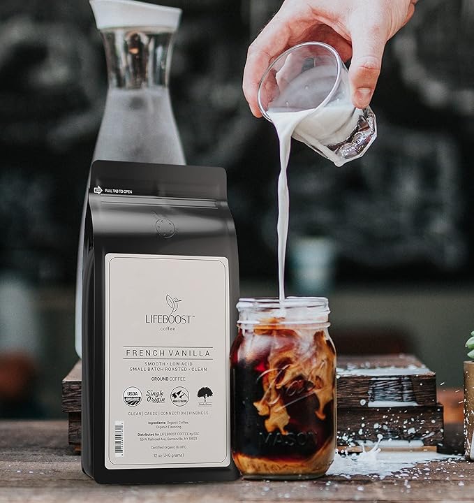 Lifeboost French Vanilla Ground Coffee - Non-GMO Low Acid Single Origin USDA Organic Coffee - Third Party Tested For Mycotoxins & Pesticides - 12 Ounces