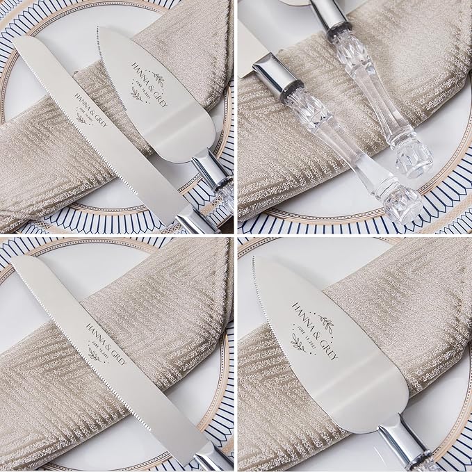 - 🍰Pure/Engraved Knife Sets- Classic 2pcs cake knife sets, solid silver, 'Mr Mrs', 'Let's eat cake together forever', 'Mis Quince Años' innovative engraved design, and 20+Personalized designs for customized, choose your favorite design for a unique gift.