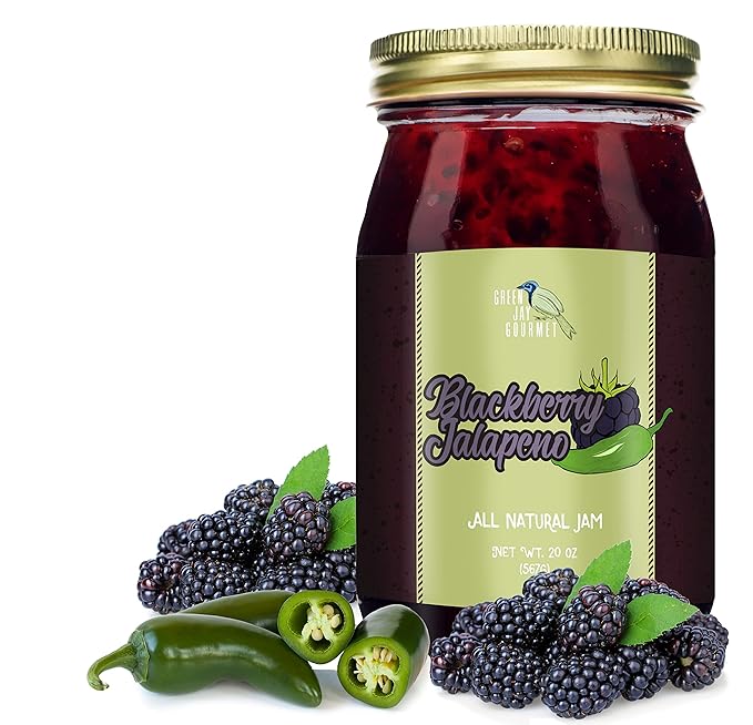 - ALL-NATURAL, VEGAN, GLUTEN-FREE: Green Jay Gourmet Spicy Blackberry Jam uses all-natural ingredients that are minimally processed to retain the natural goodness; 100% vegan, gluten-free fruit jam; Contains no preservatives or corn syrup