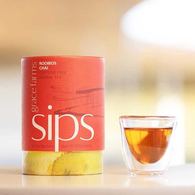 Grace Farms ROOIBOS CHAI Herbal Tea (16 Pyramid Sachets) | Healthy and Caffeine Free | Organic, Fair Trade and Kosher Certified | Gives Back 100% of Profits