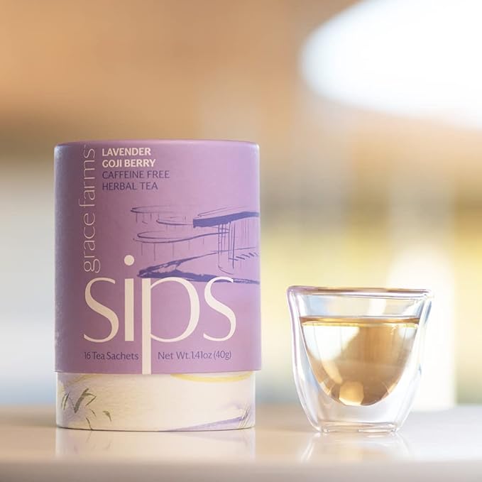 Grace Farms LAVENDER GOJI BERRY Herbal Tea (16 Pyramid Sachets) | Naturally Sweet, Stress Relieving and Caffeine Free | Organic and Kosher Certified | Gives Back 100% of Profits
