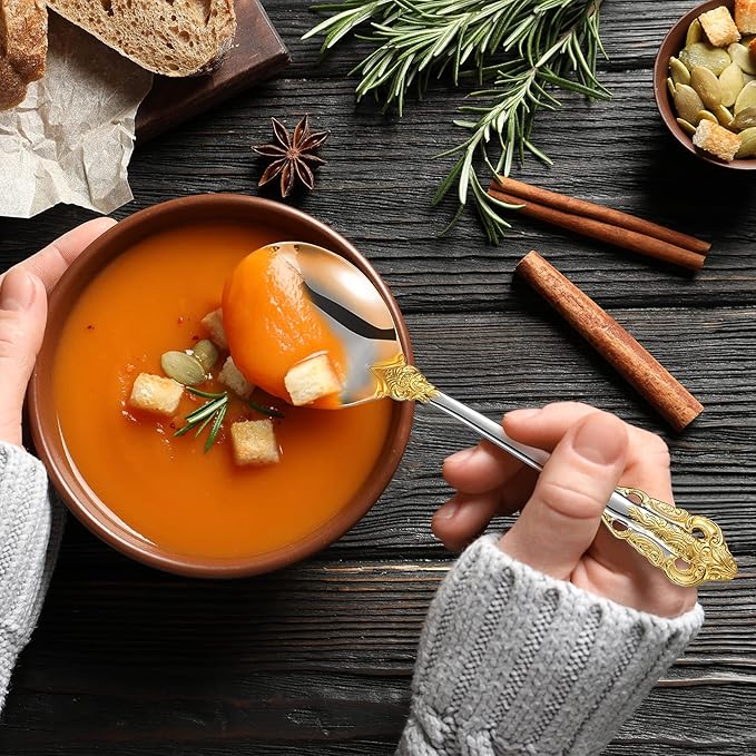 - ✅Dishwasher safe for quick and easy cleanup, (hand wash for gold soup spoons)