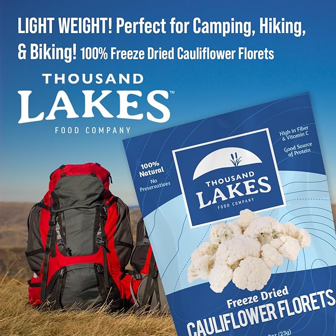 Thousand Lakes Freeze Dried Vegetables - Cauliflower Florets and Stems 2-pack 0.8 ounces (1.6 ounces total) | No Salt Added