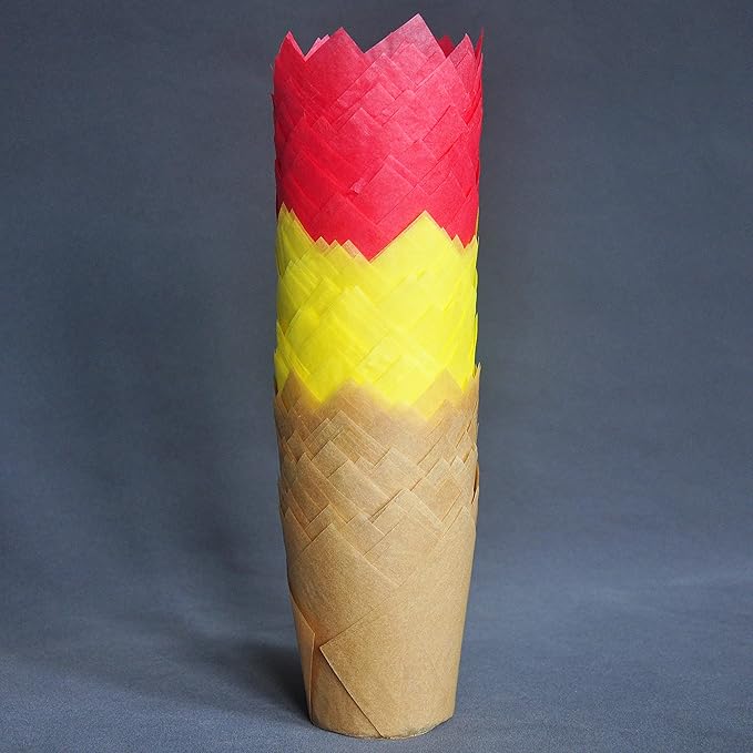 Large Greaseproof paper Wrappers Muffin Baking cupcake cups liners, 2-1/4" x 4" Natural,Red,Yellow 3 colours in a box Tulip Baking Cups Holders 125 pcs (Large) (125, Multi Red,Yellow,Natural)