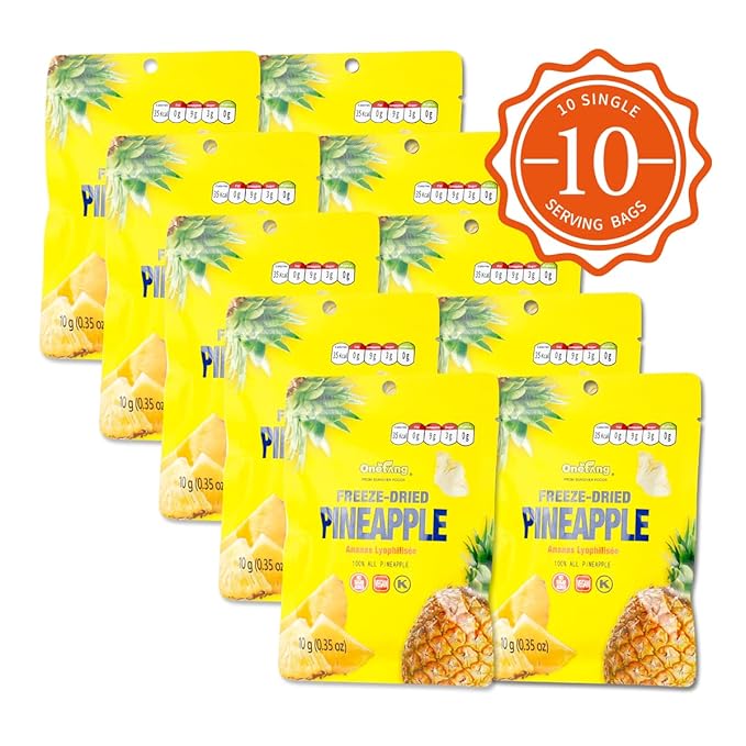 ONETANG Freeze-Dried Fruit Pineapple Chips, 10 Pack Single-Serve Pack, Non GMO, Kosher, No Add Sugar, Gluten free, Vegan, Holiday Gifts, Healthy Snack 0.35 Ounce