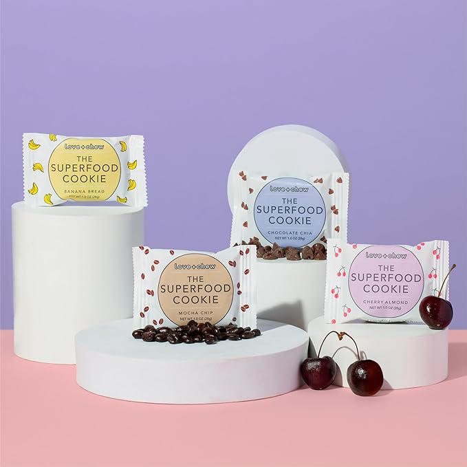 Love + Chew, Variety Pack of Minis - 16 Count - Tasty Gluten Free Cookies - Vegan - Healthy, Paleo, Non GMO Snacks - Individually Wrapped, Soft Baked Cookies - Made from High Protein Almonds - 1 Ounce Each