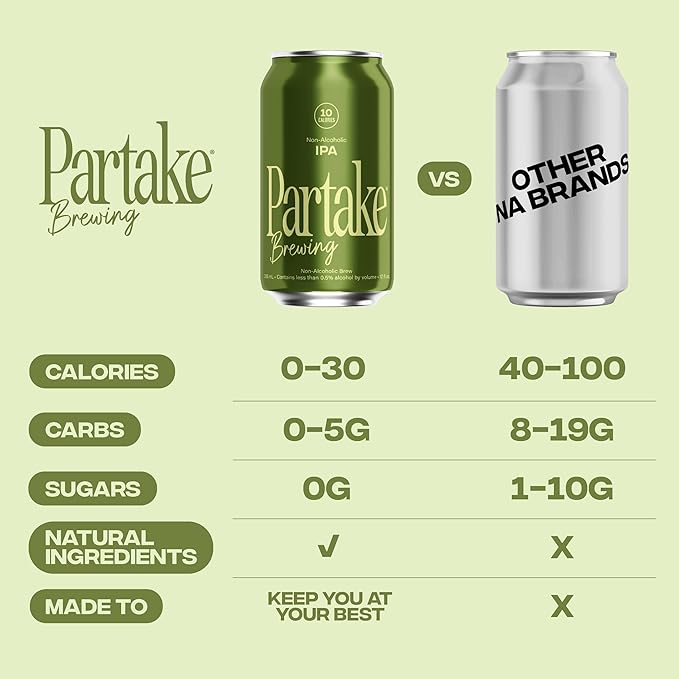 Partake Brewing Craft Non Alcoholic Beer, IPA 12 Pack x 12 Fl Oz Cans - Low Calorie & Carb, No Sugar, All Natural Ingredients - Award-Winning Taste, Non Alcoholic Beer Without the Empty Calories