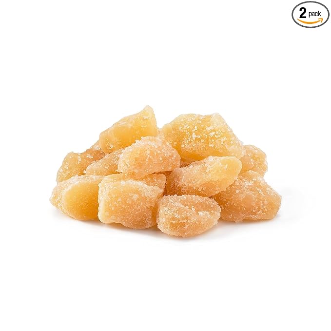 - DRIED UNSULPHURED CRYSTALLIZED GINGER: Healthy chunk ginger slices. Sweet, spicy, moist and chewy taste.