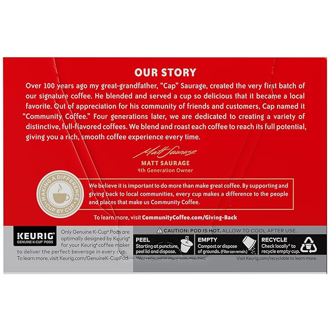 - COMMUNITY IS EVERYTHING: From using responsibly-sourced coffee beans to programs that support military service members, local schools & more, Community Coffee gives back to our partners & local communities in every way we can.