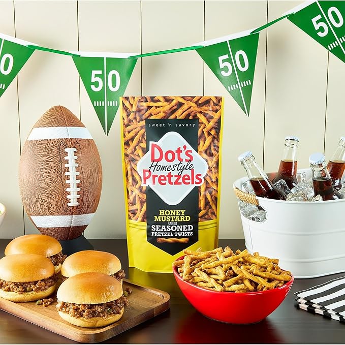 - Inspired by never-ending requests from our loyal fan base, Dot's Honey Mustard Seasoned twists bring you a sweet and savory blend of bold spices. Receive a 16oz resealable bag that's perfect for any snacking occasion