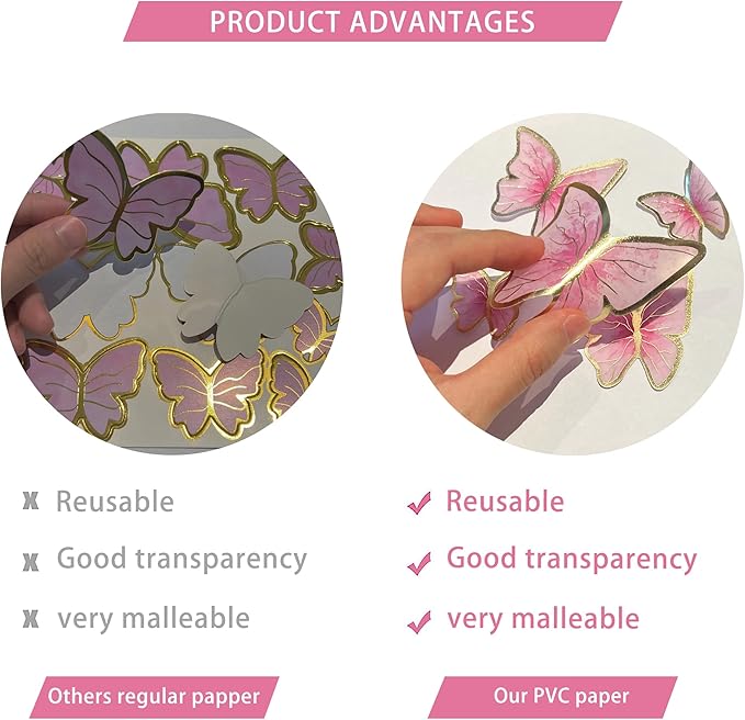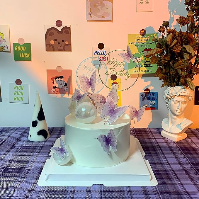 - 【Material】:happy birthday cake Toppers Use a metal borderand acrylic panels,The butterfly cake toppers are made of PVC,firm and durable for applying;safe and non-toxic for food decoration.The PVC material is not easy to deform and break, and also reusable after washing