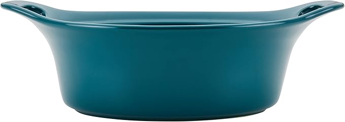 Rachael Ray Solid Glaze Ceramics Casserole Bakeware/Baker Set with Shared Lid, 3 Piece, Teal