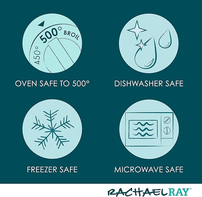 - LET IT RIP: Rachael's ceramic bakeware is oven safe to 500°F for oven-to-table baking and presentation