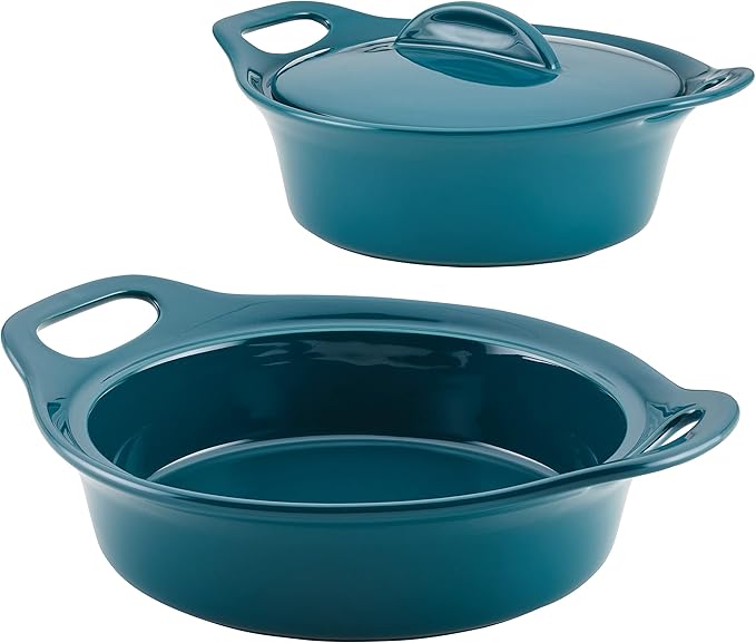 - KITCHEN FRIENDLY STORAGE: Rachael Ray's round bakers are crafted from durable ceramic for stylish and practical baking and serving from oven to table