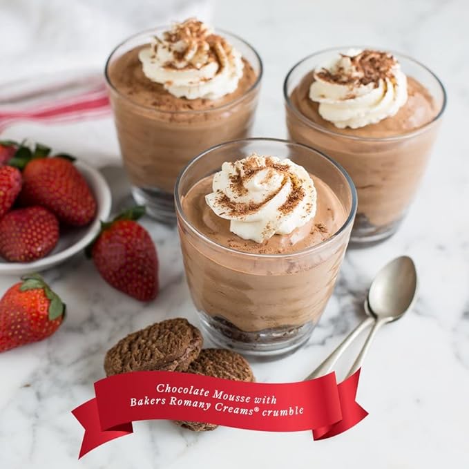 - Classic choc Romany Creams crunchy choc coconut biscuits, are made with the finest ingredients and a touch of Bakers magic.