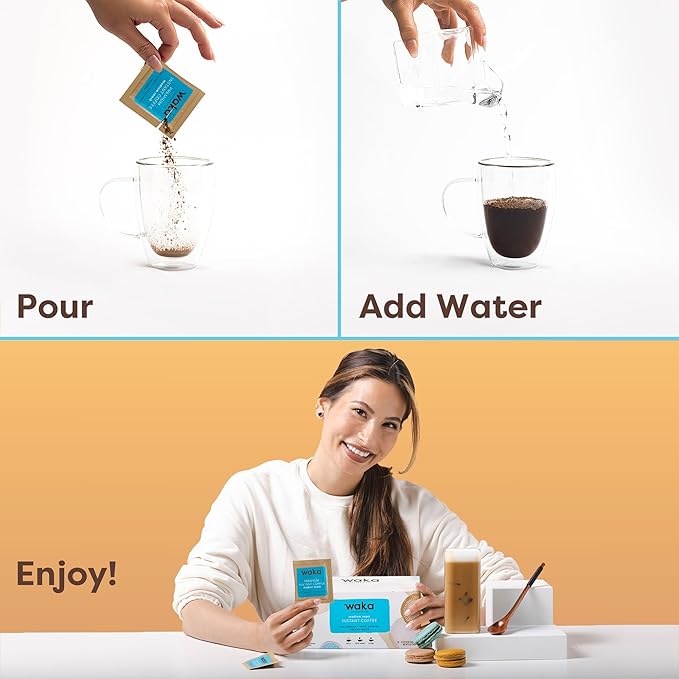 - Convenient and Affordable: At Waka, we know instant beverages the best, because it is all we do. Designed for home and office use, camping, and for those constantly on-the-go, delight in the ease and quickness of a coffee made with only 3 steps - pour, mix, and enjoy.