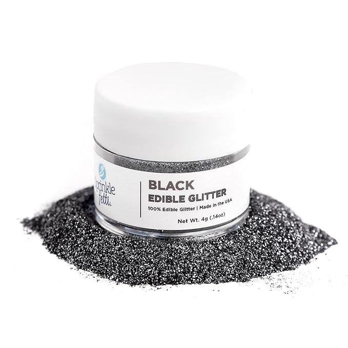Sweets Indeed, Edible Glitter, Perfect for Drinks, Cocktails, Beverages & Cake Decorating, Dessert Cake Topper, Gift, 4 grams (Black Edible Glitter)
