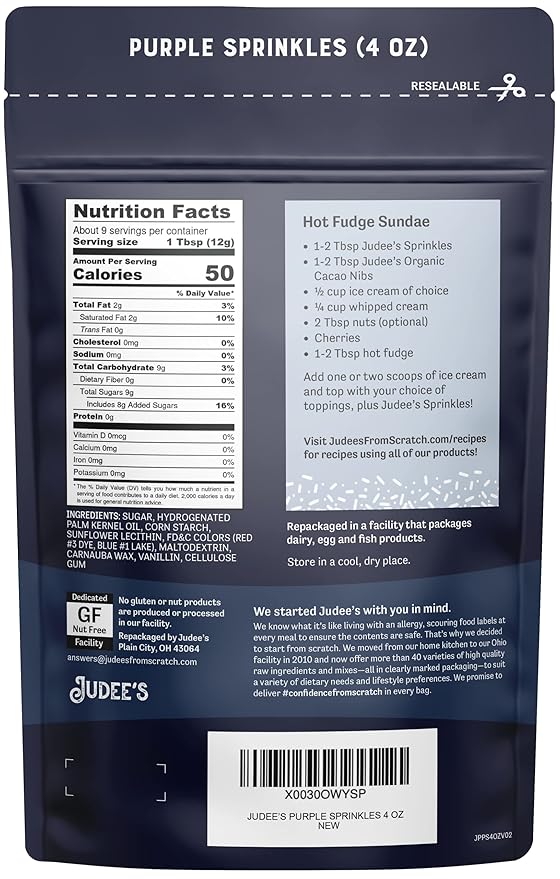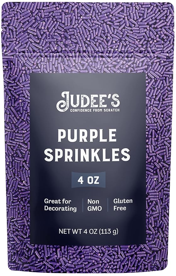 - Judee's Gluten Free Delight: Enhance your baking endeavors with Judee's Purple Sprinkles, perfect for cake decorations and dessert sprinkles. These vibrant purple sprinkles for cake decorating bring color and joy to any occasion