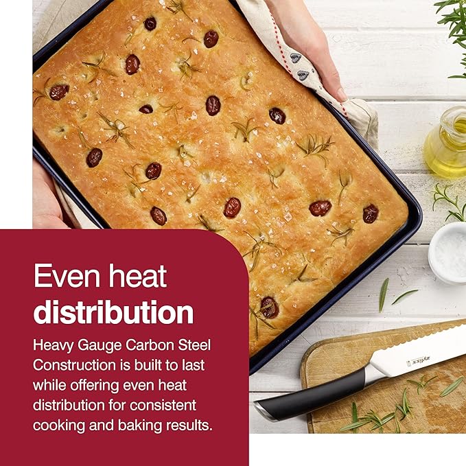 - Carbon Steel Bakeware: This long-lasting baking sheet offers even heat distribution while baking