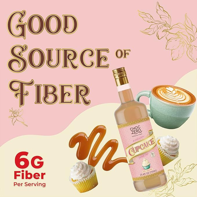 ChocZero Sugar Free Coffee Syrup, Cupcake Flavor, No Sucralose Simple Syrup Drink Mix, Birthday Cake Frappe, Protein Shakes & Baking, All Natural, 25.4 Ounces (Pack of 1)