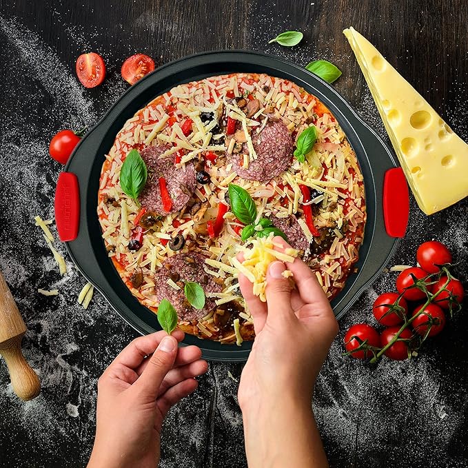 - HEATPROOF SILICONE HANDLES: The commercial grade restaurant quality kitchen bakeware features red silicone handles to prevent accidental burns. Also stain-resistant, easy to clean & dishwasher safe but hand washing is recommended to extend pan life