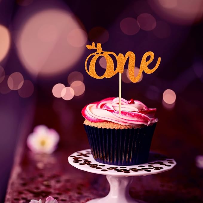 24pcs Pumpkin One Cupcake Toppers Fall First Birthday Cake Decorations, Orange Glitter Little Pumpkin Decorations, Pumpkin 1st Birthday Cupcake Picks Baby Shower