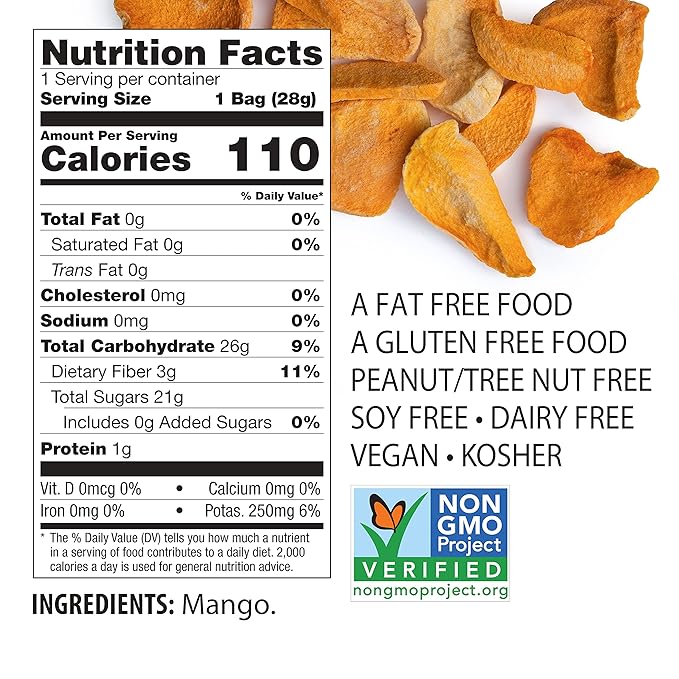 - 100% Fruit: Our Fruit Crisps are made with freeze dried mango slices. That's it! There's zero additives, preservatives or artificial coloring, just fruit bursting with flavor