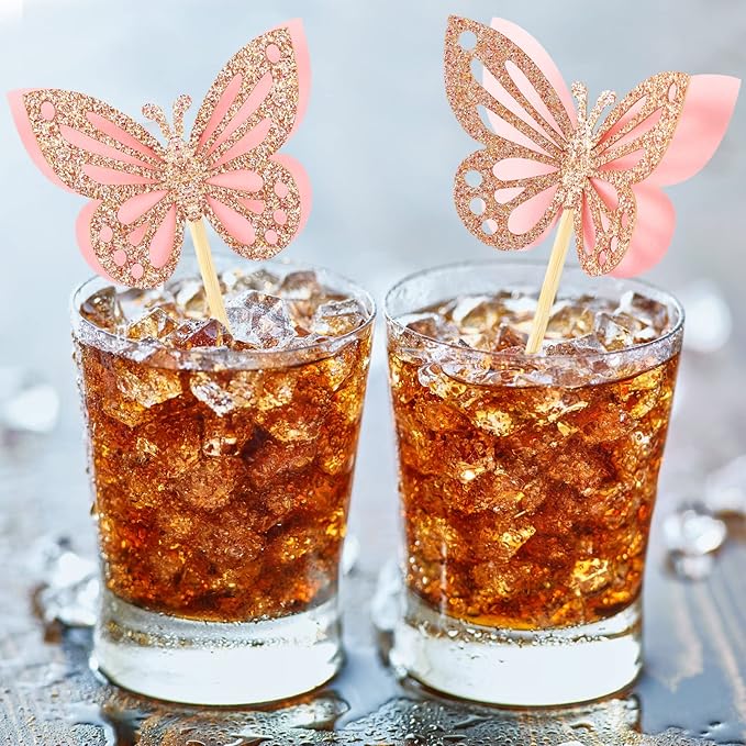 - Double Layer Structure: our assembled butterfly picks are made of double layers of cardboard, with 3D visual effect; With the glitter pink design, they look more elegant, and bring romantic atmosphere to your party