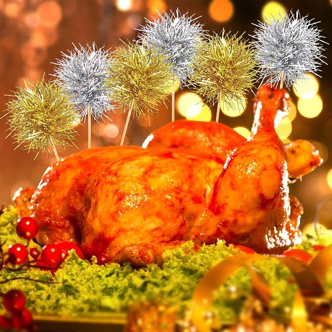 Chinco 100 Pcs Foil Firework Cupcake Toppers Sparkle Tinsel Cake Toppers Cake Decoration Cocktail Fruit Toothpick for Birthday Wedding Graduation Party(Gold, Silver)