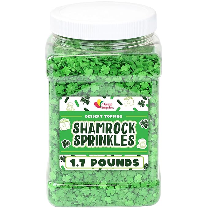 - Irresistible Irish Charm: Infuse your treats with a burst of St. Patrick's Day magic with shamrock confetti sprinkles. The vibrant green color and four-leaf clover shapes make for an eye-catching and deliciously festive addition to your holiday baking.