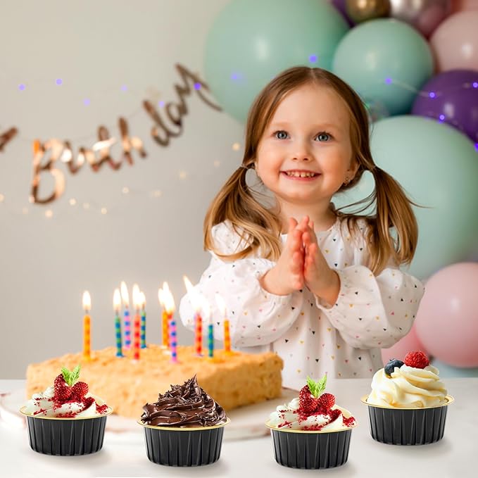 5oz Foil Ramekins with Lids 50 Pack,Free-Air Aluminum Foil Cupcake Liners Muffin Cups,Disposable Muffin Tins Jumbo Cupcake Baking Cups Muffin Pans for Custard Creme Brulee,with 50 Spoons-Black