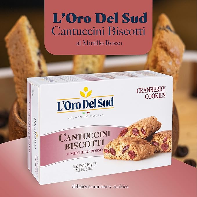 L'Oro Del Sud Cranberry Biscotti, Cantuccini d'Abruzzo, Italian Cookies Madewith Real Quality Ingredients, 180 G, 6.3 oz